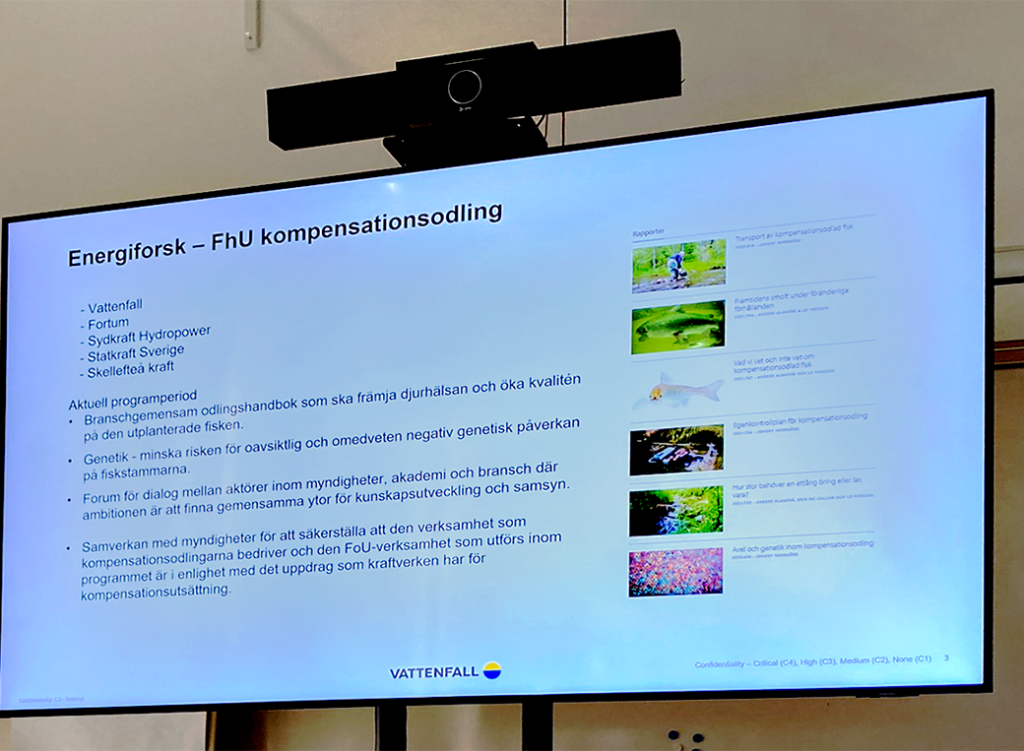 Genomgång av Västanå fiskodling och Vattenfalls utvecklingslabb. Seminarium om klimatrelaterade problem med yngelproduktion och om funktioner i RAS som har möjlighet att minska problemen.